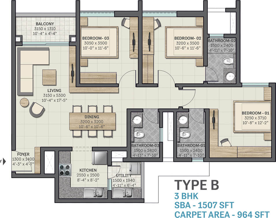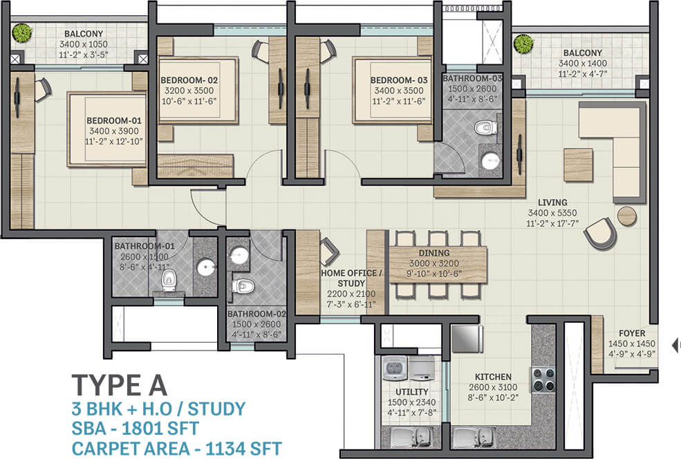 | 3 BHK + Home Office | 1804 | Rs. 2.53 Crore Onwards |