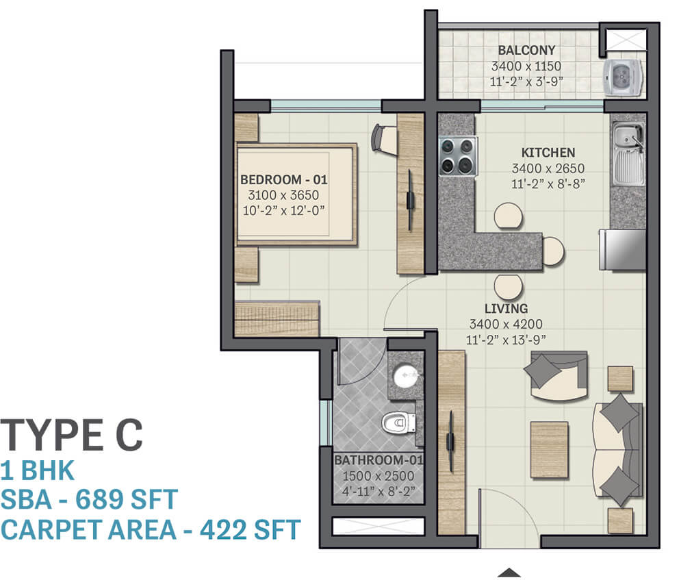 | 1 BHK | 680 to 685 | SOLD OUT |
