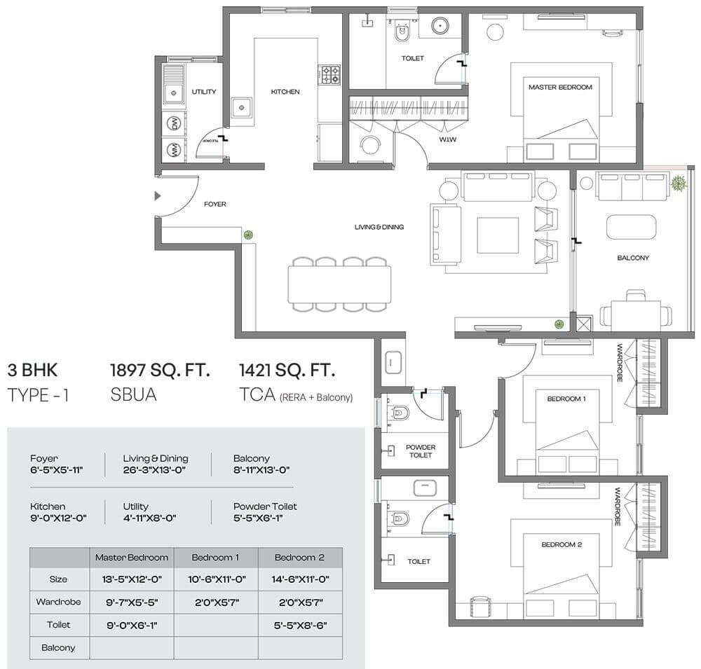| 3 BHK | 2111 | Rs. 3.04 Crore Onwards |
